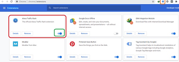 After downloading the Alexa Toolbar, it will be added to the Extensions page and all you have to do is enable the Alexa Toolbar and then you will be able to see the ranking of your website and any website you want.
